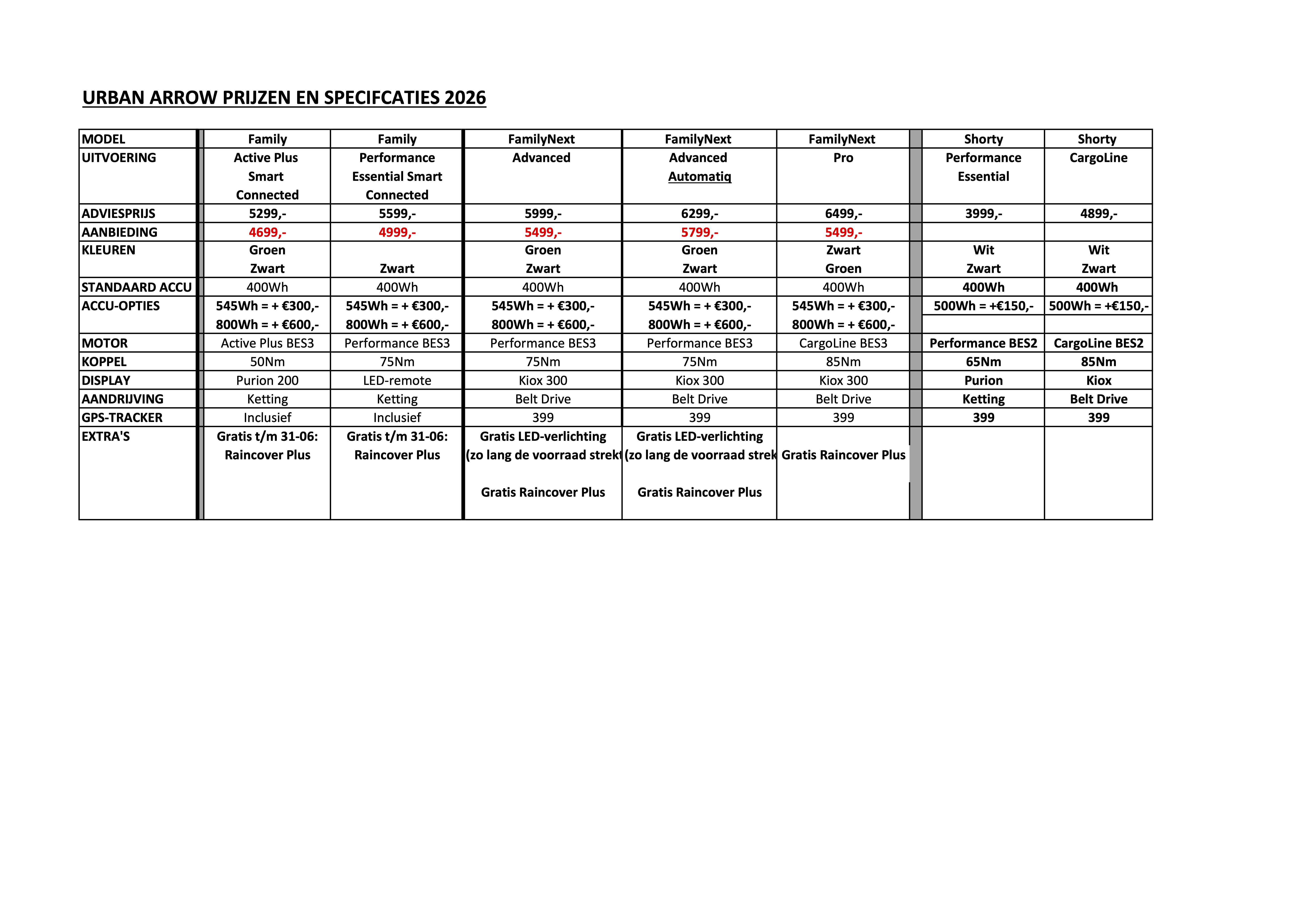 Hieronder uitleg over de verschillende modellen van de Urban Arrow Family die wij aanbieden
